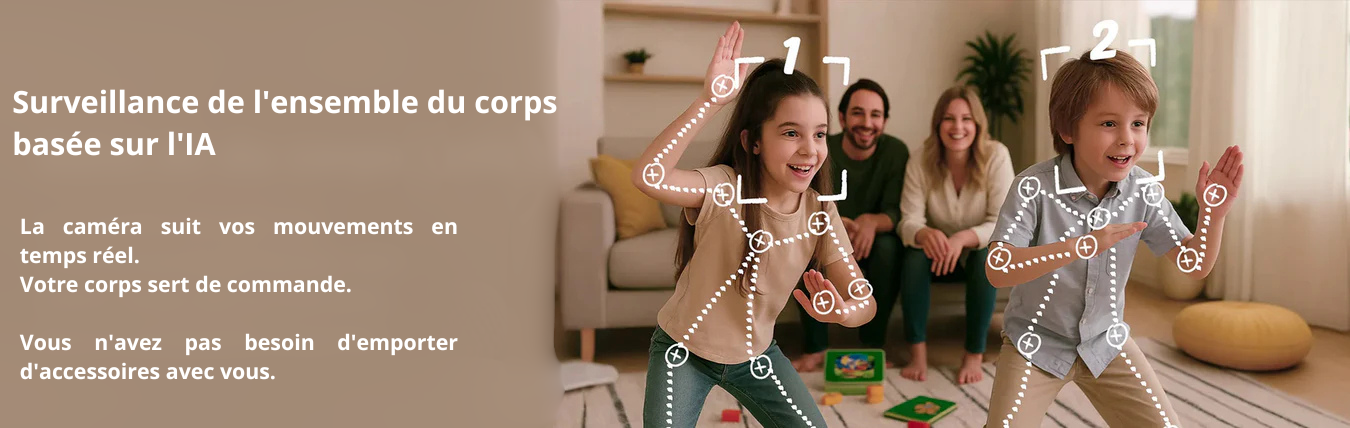 MotionBox® est une console de jeux interactive qui transforme votre téléviseur en aire de jeux. Des jeux vidéo commandés par les mouvements, sans manette, idéaux pour faire bouger les enfants à la maison.